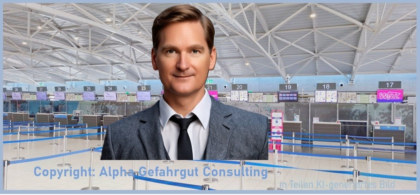 Bild zeigt den vom Luftfahrt-Bundesamt anerkannten „IATA-Ausbilder“ für die Gefahrgutbeförderung nach den technischen Regeln der ICAO-TI/IATA-DGR bei Alpha Gefahrgut Consulting in einem Flughafengebäude