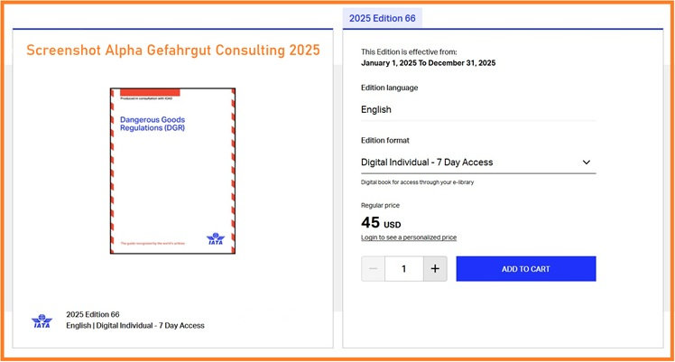 Eine gute Option füe eine Schulungsunterlage: Eine IATA-DGR mit zeitlich begrenztem Zugriff.